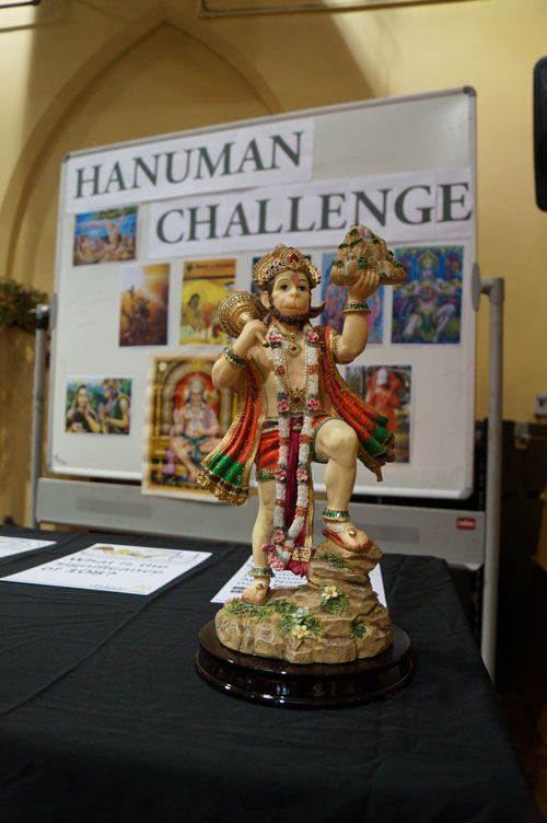 On Saturday 9th February 2013, NHSF Liverpool hosted the annual event which in its true form, integrated students and the Hindu samaj. As a gesture, each guest was given a scroll which had the Hanuman Chalisa printed on upon entering the Mandir, the morning started off with a havan where the priest explained to students why a havan is carried out. The havan was followed by attendees showing their prem (love) of the forty Chupai’s written by Tulsidas Ji based on Hanuman Ji as the perfect model of a devotee. Reciting these forty verses, students, friends and families were singing with such passion and devoutness that one could see the strength come alive in each individual through the bhakti yoga. Young children were also greatly involved with some taking to the microphone to show that at a tender age, they too can recite the Hanuman Chalisa.