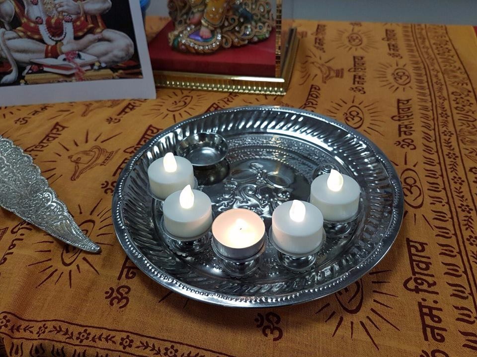 On the day of the event, committee members were joined by a few volunteers to make all the necessary arrangements, including setting-up a Mandir in the room and setting-up a lyrical video of the Hanuman Chalisa on the projector. Within half an hour, members began to file into the room and prepared to start the 11 Hanuman Chalisas. As only a handful of people in the room knew the Hanuman Chalisa, I must admit, it was a slow start but it was clear to see that everyone’s knowledge and enthusiasm grew throughout the evening. By the 11th Chalisa, there was a great sense of joy and togetherness as each word was sung, which for me, is the epitome of Hanumanji. Before starting each Chalisa we asked a different group of people to come up and place the Prasad in a thaali in the Mandir so that each person had the opportunity to give their offerings and a chance to be involved in the event.